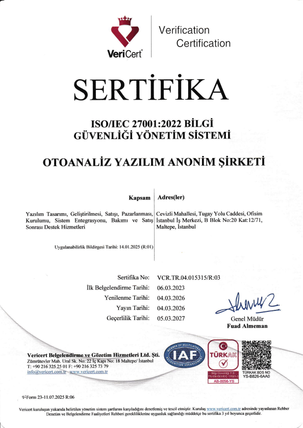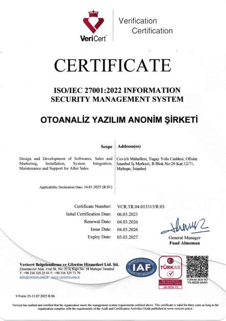 OtoAnaliz, sunduğu kaliteli ve güvenilir hizmetlerin yanında, hızlı bir şekilde ürettiği çözümleriyle daima müşterilerinin yanında olmuştur. Kaliteden ödün vermeden gerçekleştirdiği çalışmaları daha da hızlandırmak, hizmet taleplerini daha hızlı çözmek ve takip edebilmek, hizmet hızını ölçebilmek amacıyla 7/24 ON-LINE çalışan 'Kalite Yönetim Sistemi' programını yazmıştır. Diğer tüm yazılımlarında olduğu bu yazılımı da, değişen ve gelişen koşullara göre sürekli geliştirmeye devam etmektedir.