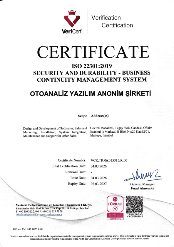 ISO9001:2008 'Kalite Yönetim Sistemi' standardında, ürün kalitesinin devamı ile müşteri memnuniyetinin sağlanması önemli bir yere sahiptir.